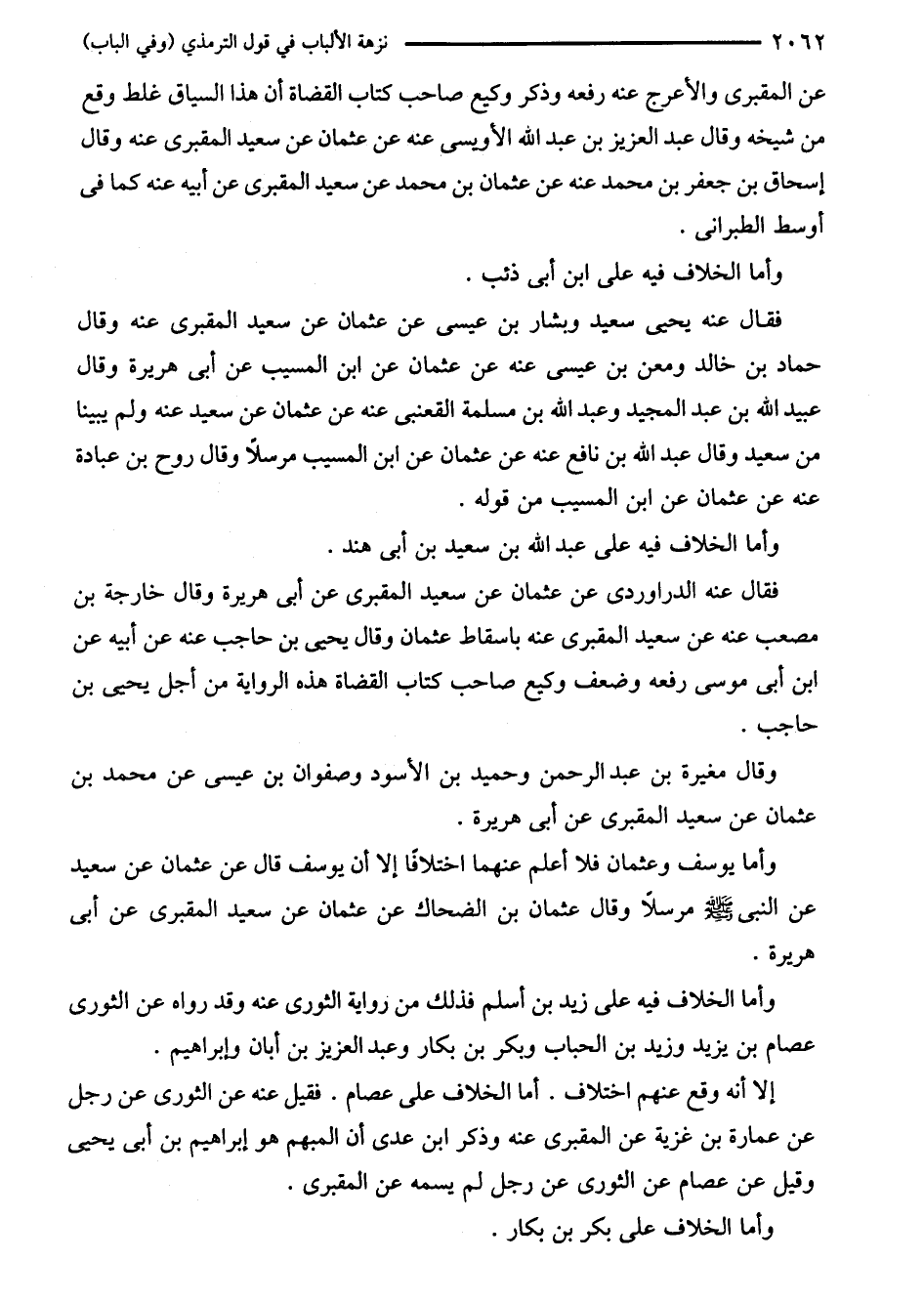 إلا أنه وقع عنهم اختلاف. أما الخلاف على عصام. فقيل عنه عن الثورى عن رجل عن عمارة بن غزية عن المقبرى عنه وذكر ابن عدى أن المبهم هو إبراهيم بن أبي يحيى وقيل عن عصام عن الثورى عن رجل لم يسمه عن المقبرى.