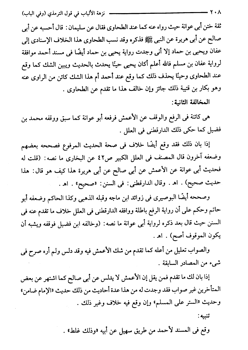 إذا بان لك ما تقدم فمن يقل إن الأعمش لا يدلس عن أبى صالح كما اشتهر عن بعض المتأخرين غير صواب فقد وجدت له من هذا عدة أحاديث من ذلك حديث "الإمام ضامن" وحديث "الستر على المسلم" كان وقع فيه خلاف وغير ذلك.