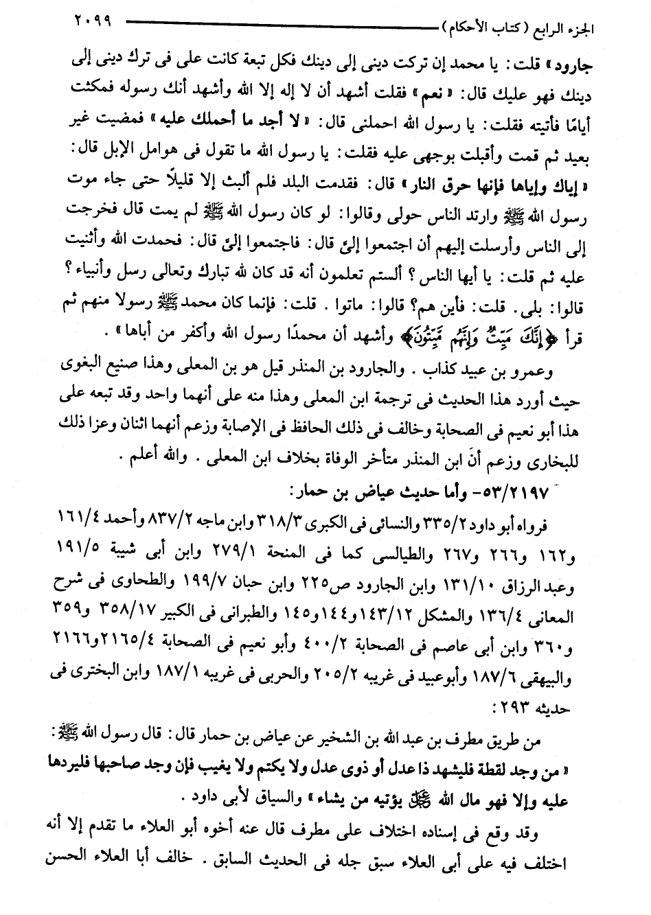 من طريق مطرف بن عبد اللَّه بن الشخير عن عياض بن حمار قال: قال رسول اللَّه - صلى اللَّه عليه وسلم -: "من وجد لقطة فليشهد ذا عدل أو ذوى عدل ولا يكتم ولا يغيب فإن وجد صاحبها فليردها عليه وإلا فهو مال اللَّه -عز وجل- يؤتيه من يشاء" والسياق لأبى داود.