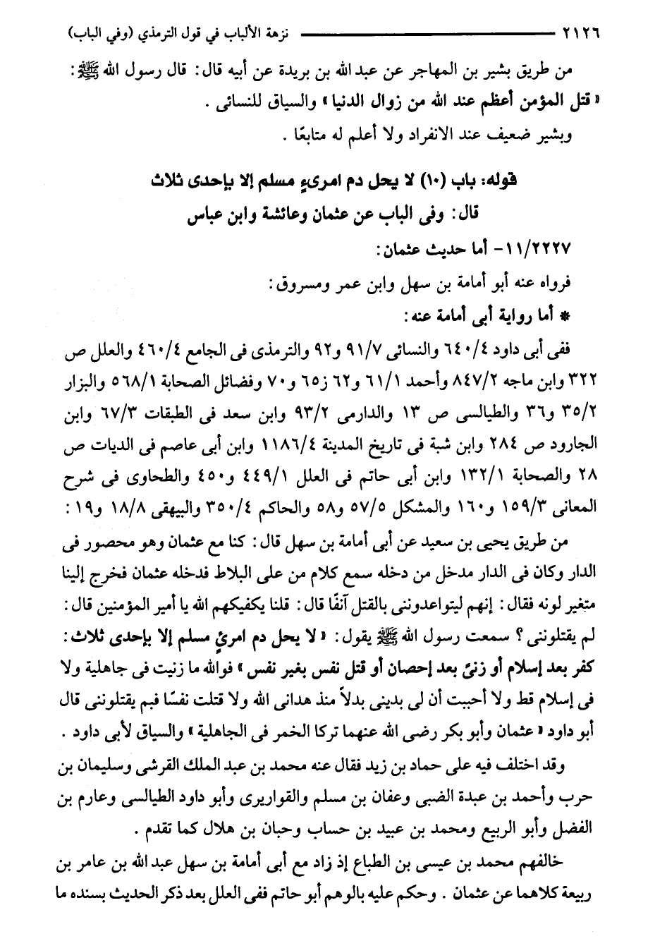 قوله: باب (10) لا يحل دم امرىءٍ مسلم إلا بإحدى ثلاث