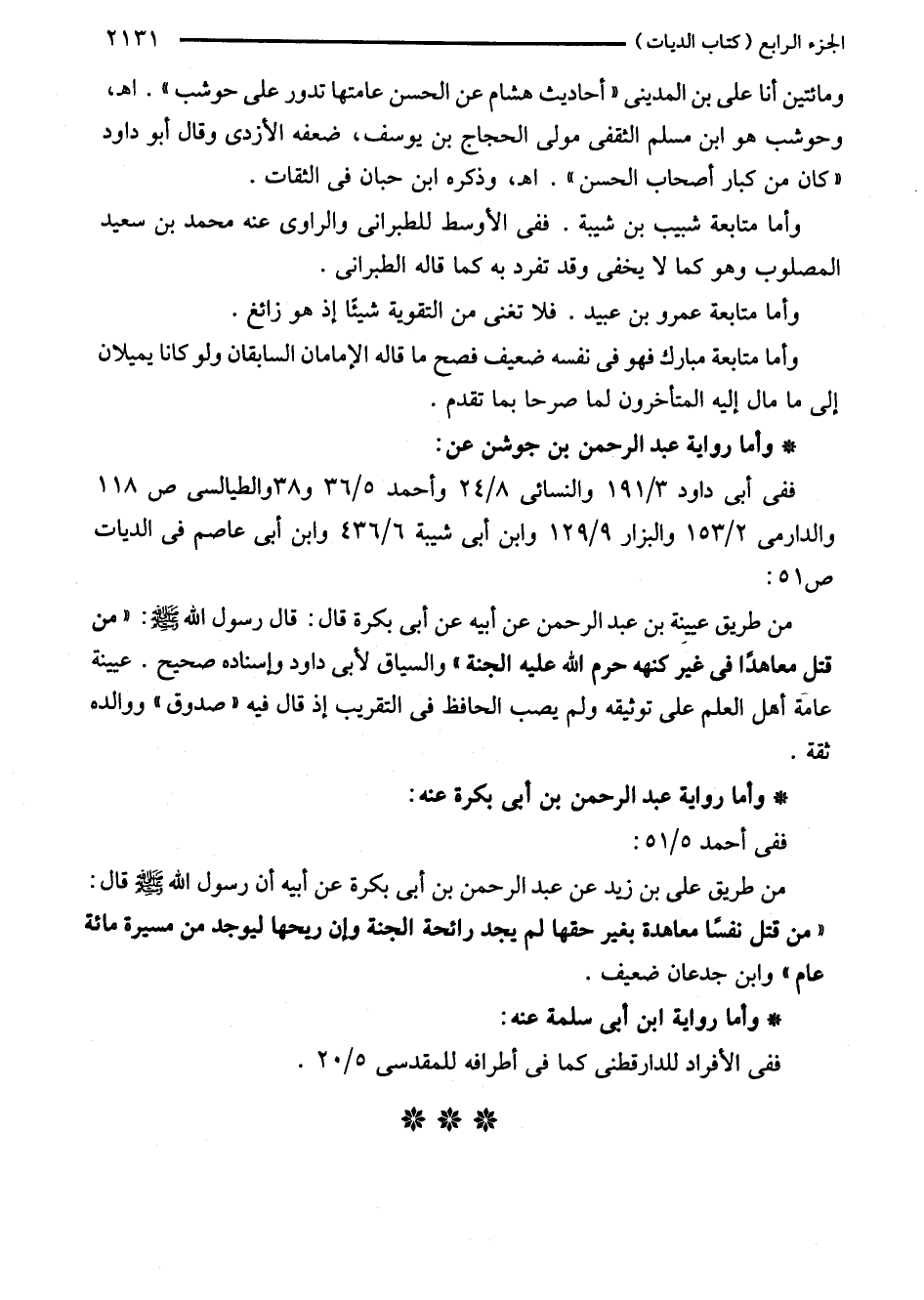 ففي أبي داود 3/ 191 والنسائي 8/ 24 وأحمد 5/ 36 و 38 والطيالسى ص 118 والدارمي 2/ 153 والبزار 9/ 129 وابن أبي شيبة 6/ 436 وابن أبي عاصم في الديات ص 51: