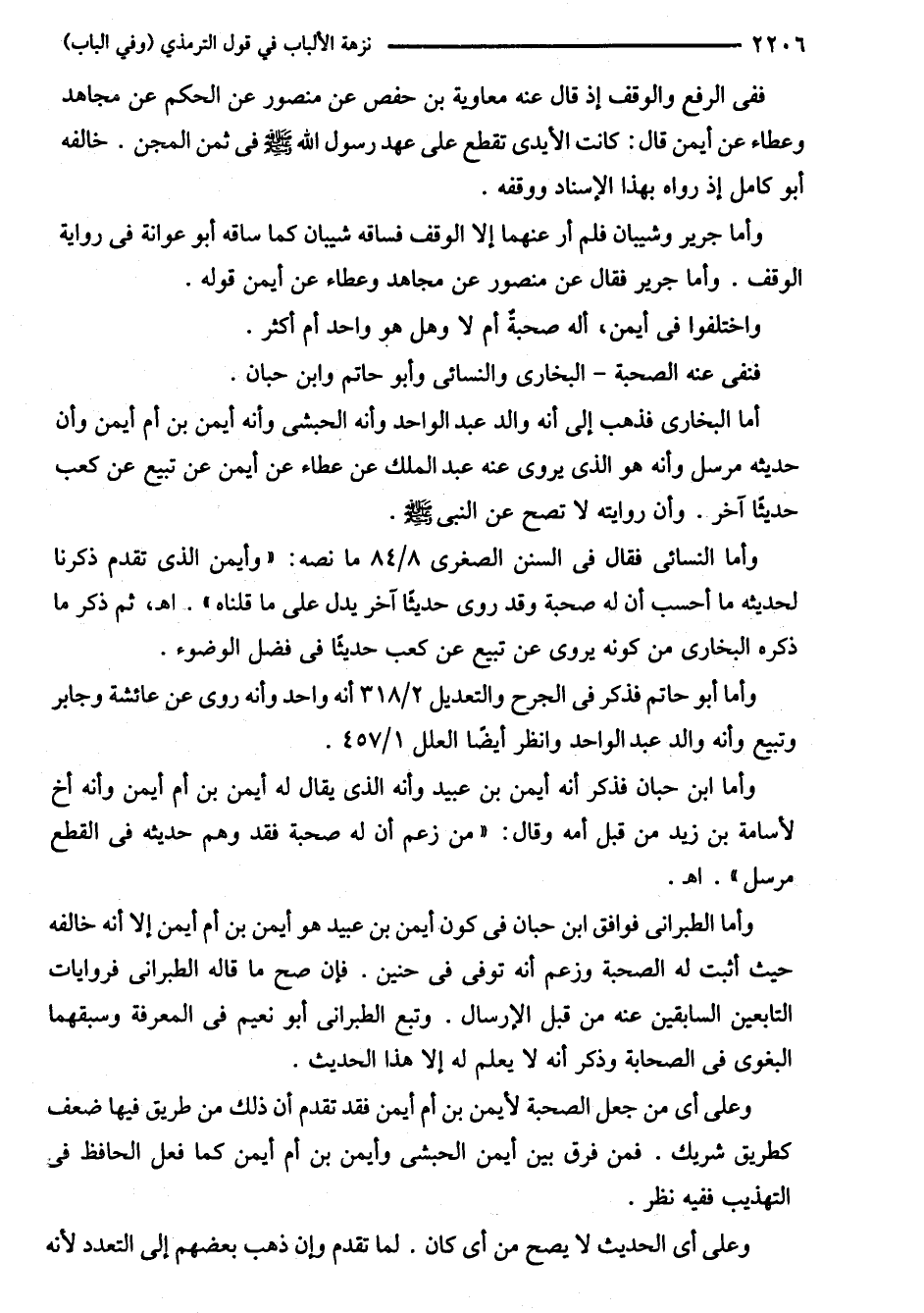 وعلى أي من جعل الصحبة لأيمن بن أم أيمن فقد تقدم أن ذلك من طريق فيها ضعف كطريق شريك. فمن فرق بين أيمن الحبشى وأيمن بن أم أيمن كما فعل الحافظ في التهذيب ففيه نظر.