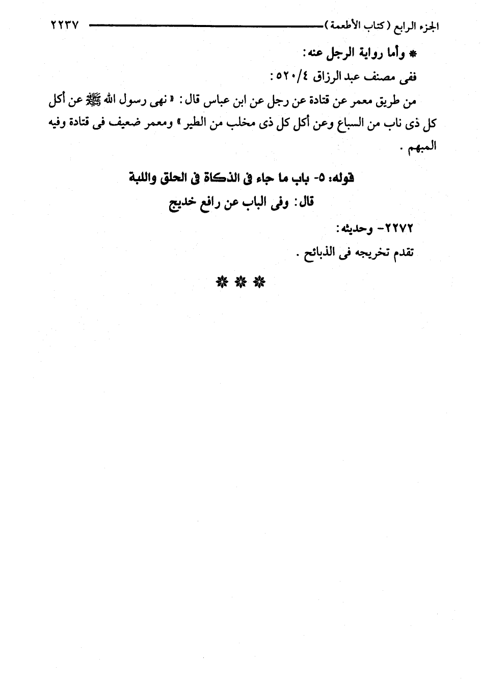 قوله: 5 - باب ما جاء في الذكاة في الحلق واللبة