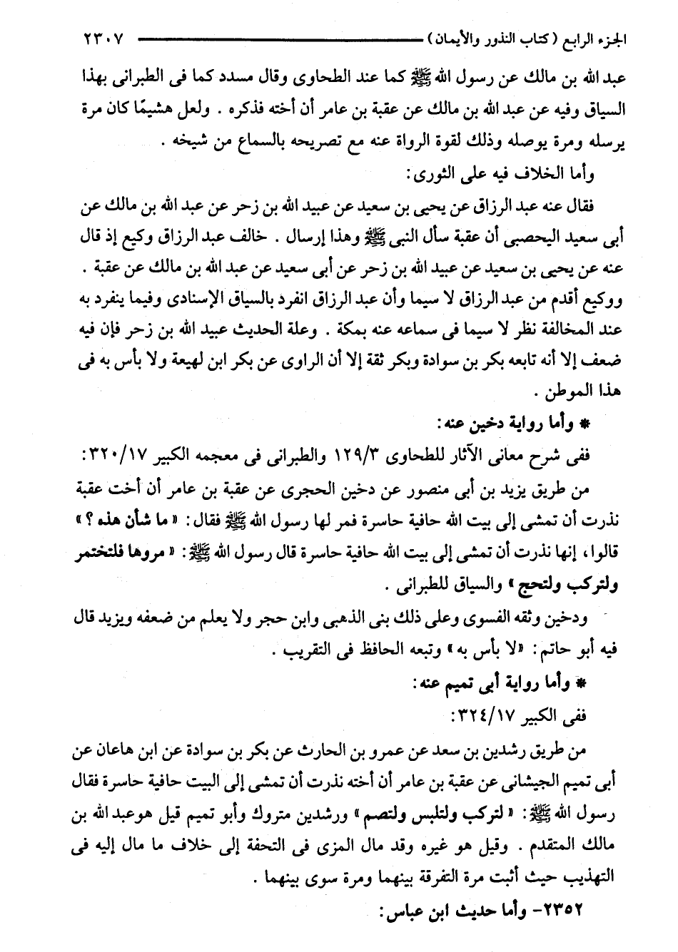 فقال عنه عبد الرزاق عن يحيى بن سعيد عن عبيد اللَّه بن زحر عن عبد اللَّه بن مالك عن أبي سعيد اليحصبى أن عقبة سأل النبي - صلى اللَّه عليه وسلم - وهذا إرسال. خالف عبد الرزاق وكيع إذ قال عنه عن يحيى بن سعيد عن عبيد اللَّه بن زحر عن أبي سعيد عن عبد اللَّه بن مالك عن عقة. ووكيع أقدم من عبد الرزاق لا سيما وأن عبد الرزاق انفرد بالسياق الإسنادى وفيما ينفرد به عند المخالفة نظر لا سيما في سماعه عنه بمكة. وعلة الحديث عبيد اللَّه بن زحر فإن فيه ضعف إلا أنه تابعه بكر بن سوادة وبكر ثقة إلا أن الراوى عن بكر ابن لهيعة ولا بأس به في هذا الموطن.