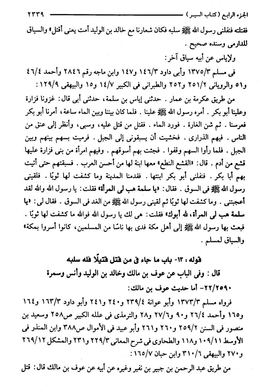 قوله: 13 - باب ما جاء في من قتل قتيلًا فله سلبه