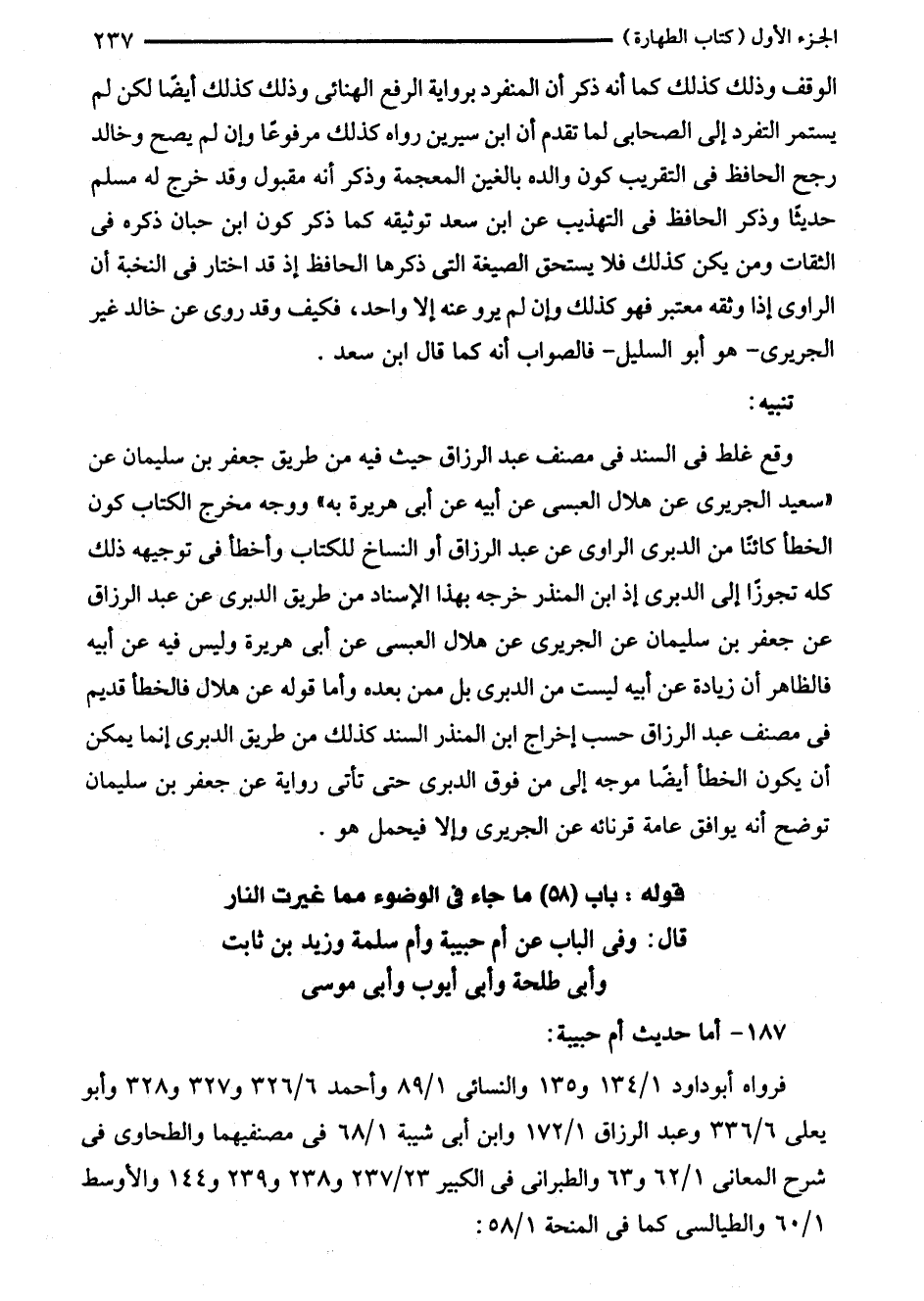 قوله: باب (58) ما جاء في الوضوء مما غيرت النار