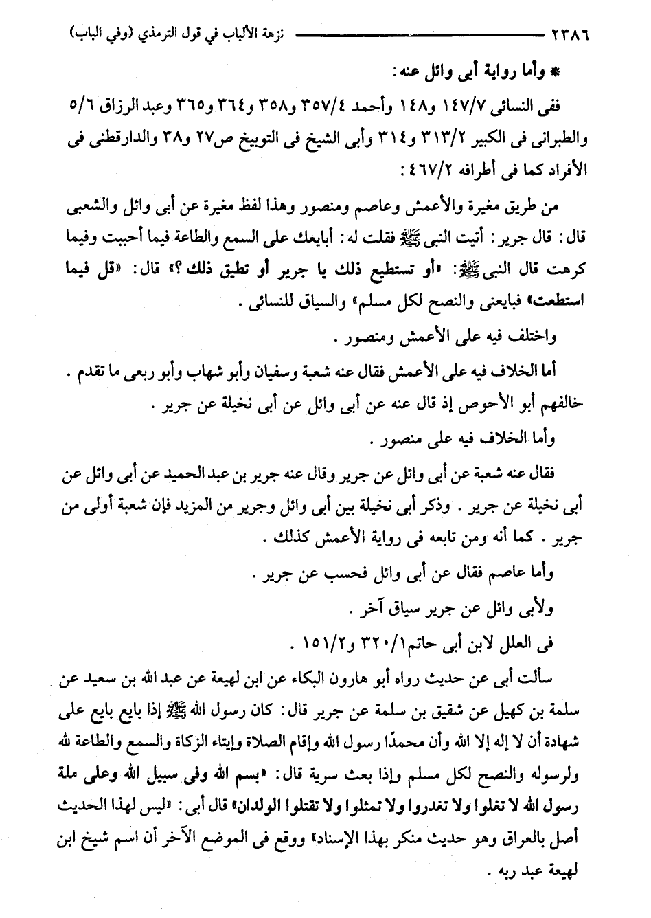 كتاب نزهة الألباب في قول الترمذي «وفي الباب» (اسم الجزء: 4)
