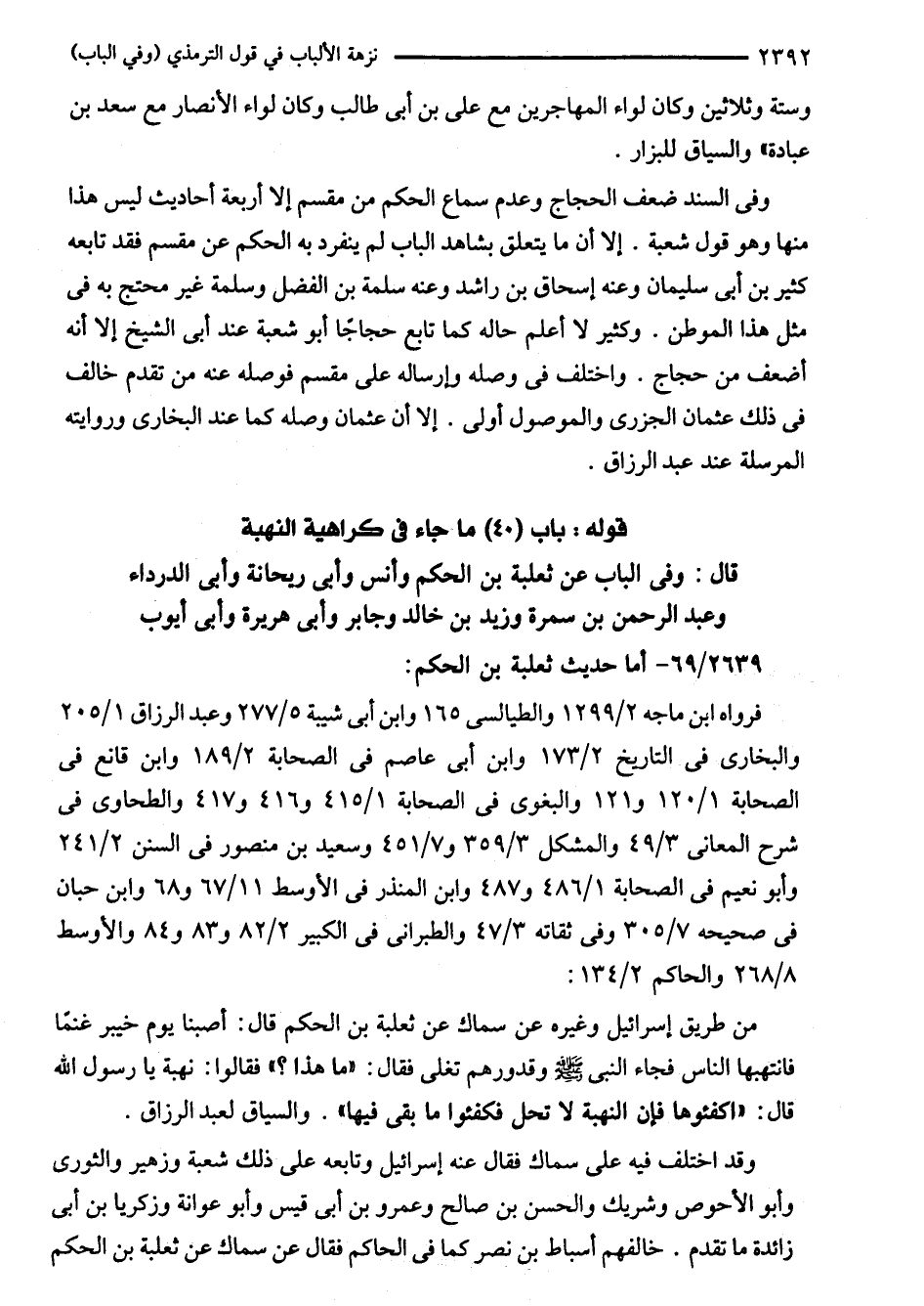 كتاب نزهة الألباب في قول الترمذي «وفي الباب» (اسم الجزء: 4)