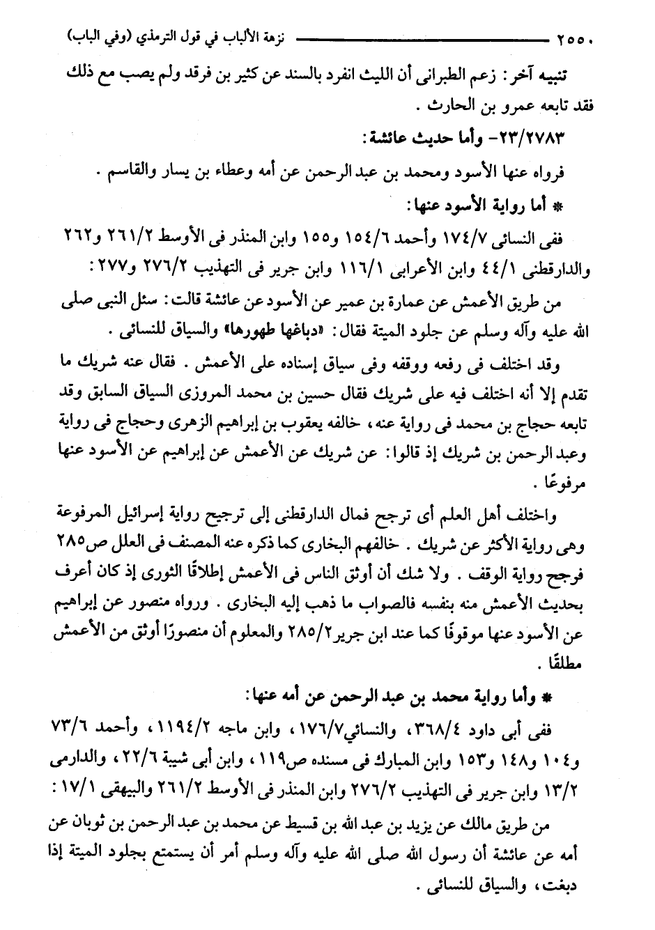 ففي النسائي 7/ 174 وأحمد 6/ 154 و 155 وابن المنذر في الأوسط 2/ 261 و 262 والدارقطني 1/ 44 وابن الأعرابى 1/ 116 وابن جرير في التهذيب 2/ 276 و 277:
