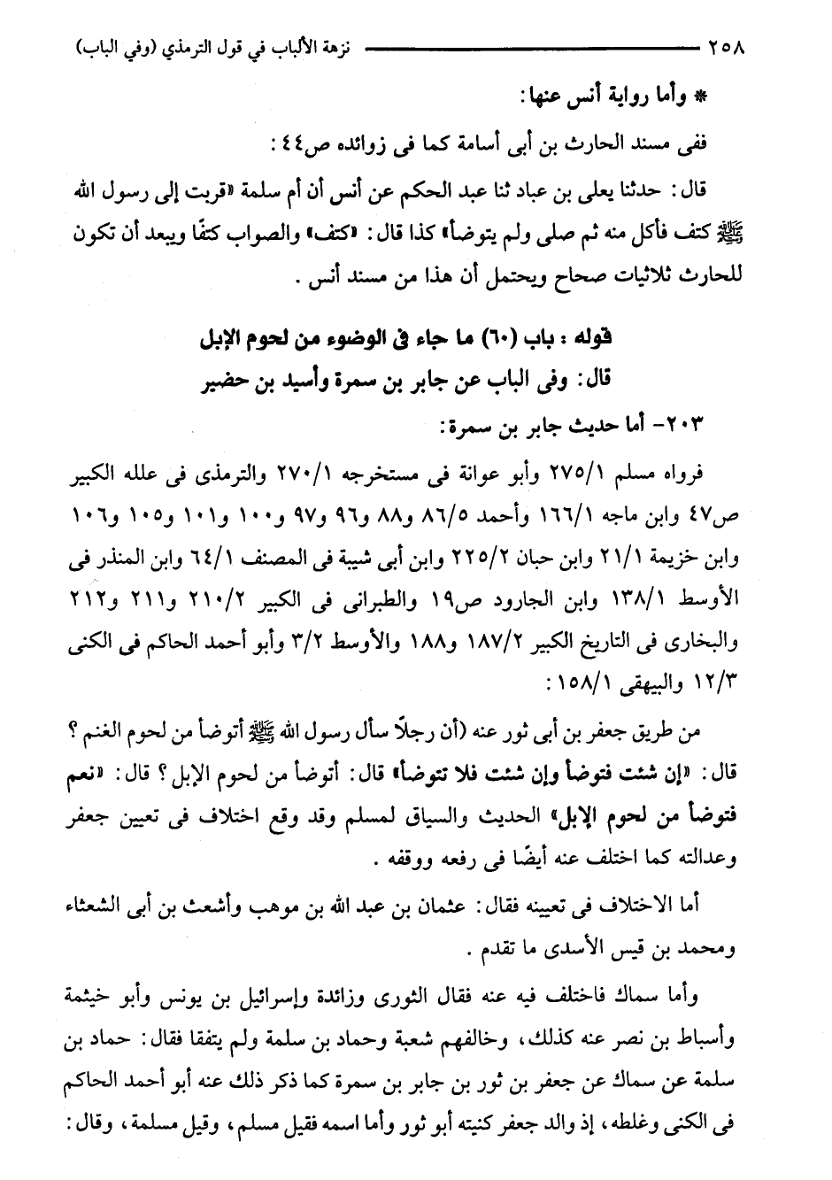 قوله: باب (60) ما جاء في الوضوء من لحوم الإبل