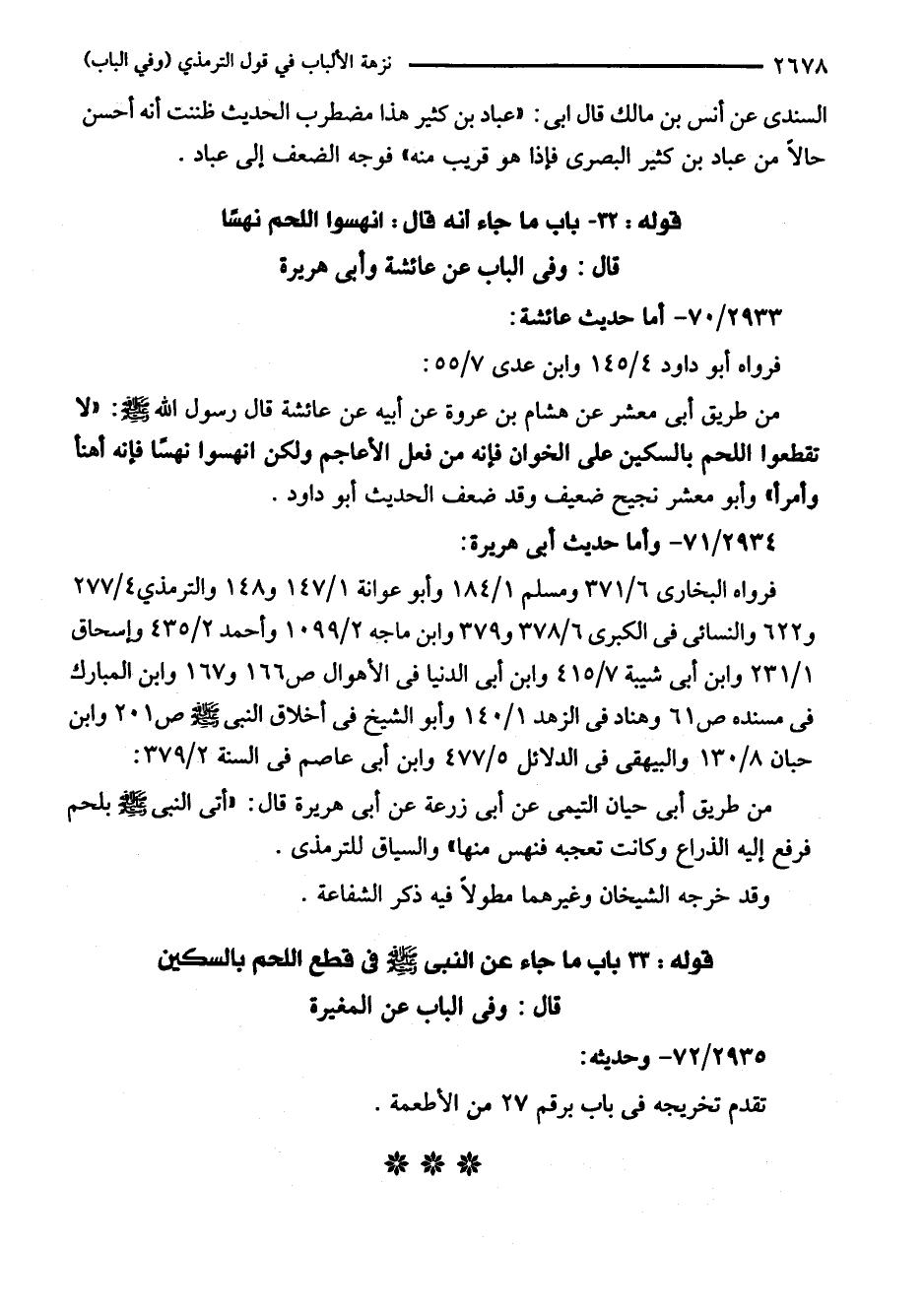 قوله: 33 - باب ما جاء عن النبي - صلى اللَّه عليه وسلم - في قطع اللحم بالسكين