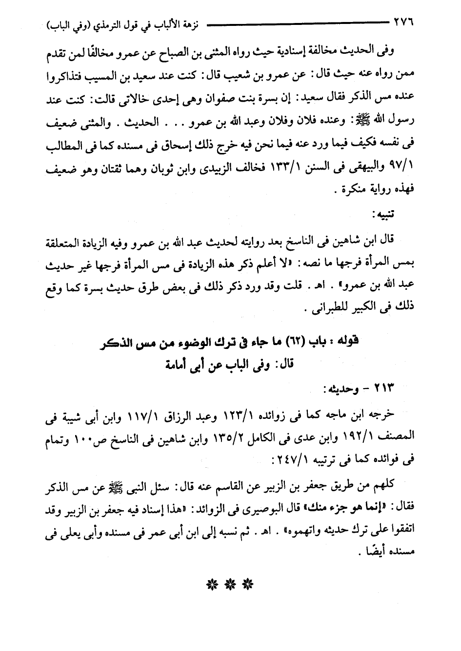 قوله: باب (62) ما جاء في ترك الوضوء من مس الذكر