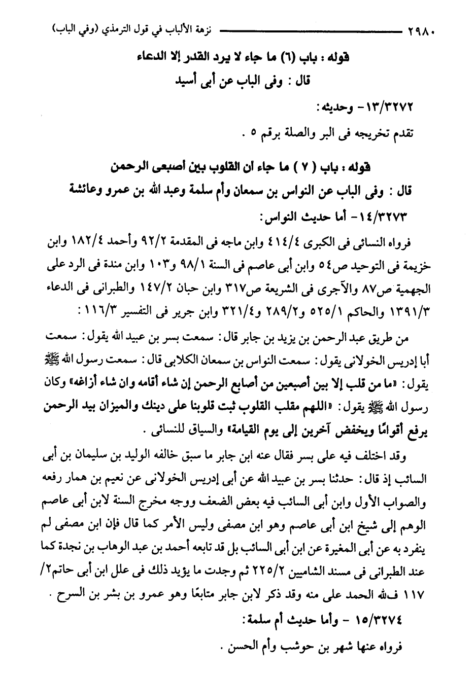 قوله: باب (7) ما جاء أن القلوب بين أصبعى الرحمن