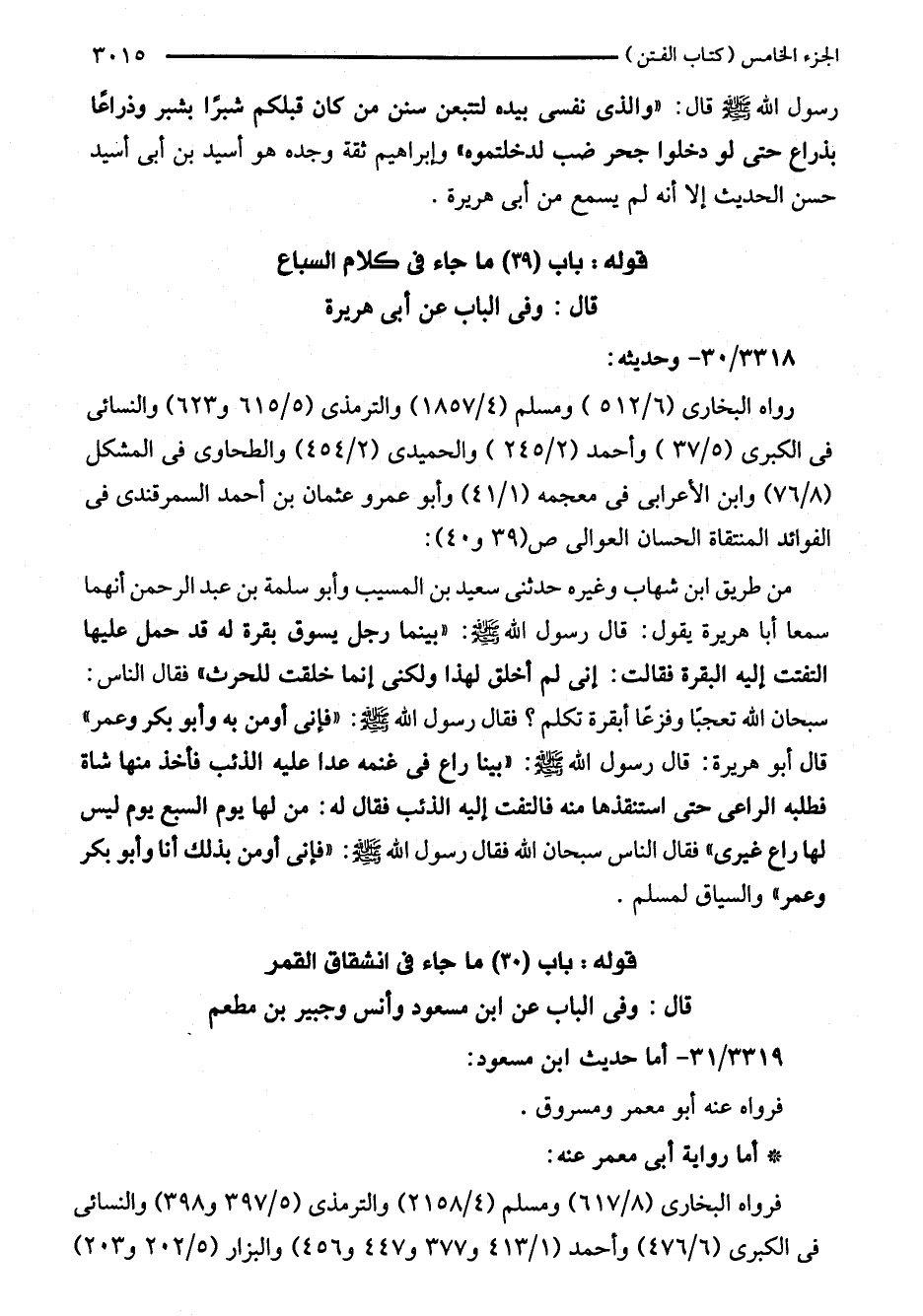 رواه البخاري (6/ 512) ومسلم (4/ 1857) والترمذي (5/ 615 و 623) والنسائي في الكبرى (5/ 37) وأحمد (2/ 245) والحميدي (2/ 454) والطحاوى في المشكل (8/ 76) وابن الأعرابى في معجمه (1/ 41) وأبو عمرو عثمان بن أحمد السمرقندى في الفوائد المنتقاة الحسان العوالى ص (39 و 40):