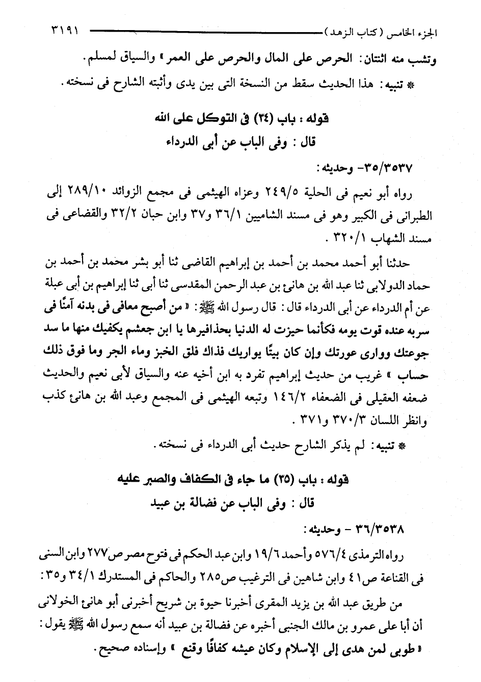 قوله: باب (35) ما جاء في الكفاف والصبر عليه