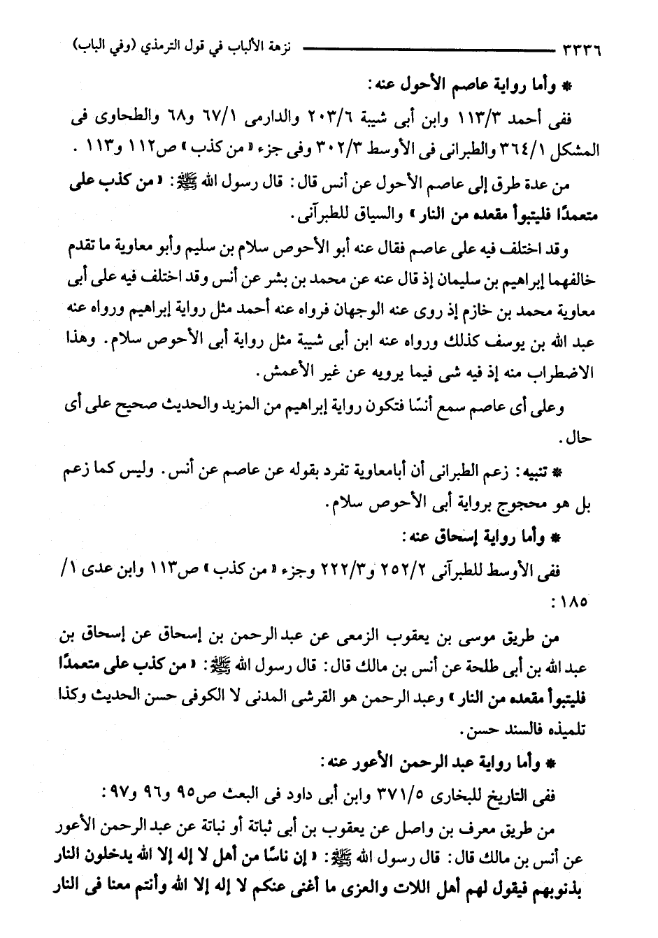 * تنبيه: زعم الطبراني أن أبا معاوية تفرد بقوله عن عاصم عن أنس. وليس كما زعم بل هو محجوج برواية أبى الأحوص سلام.