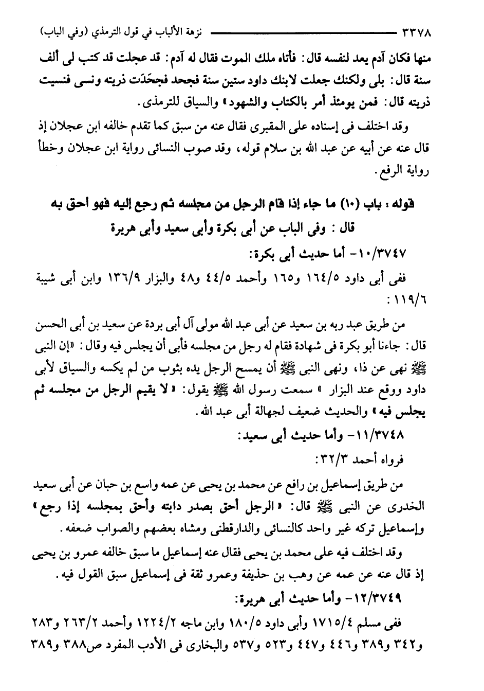 قوله: باب (10) ما جاء إذا قام الرجل من مجلسه ثم رجع إليه فهو أحق به