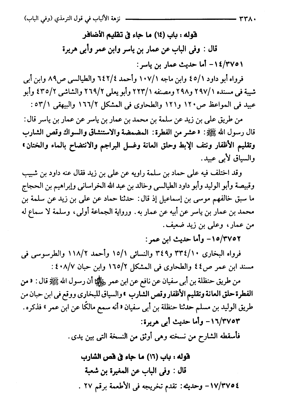 قوله: باب (14) ما جاء في تقليم الأضافر