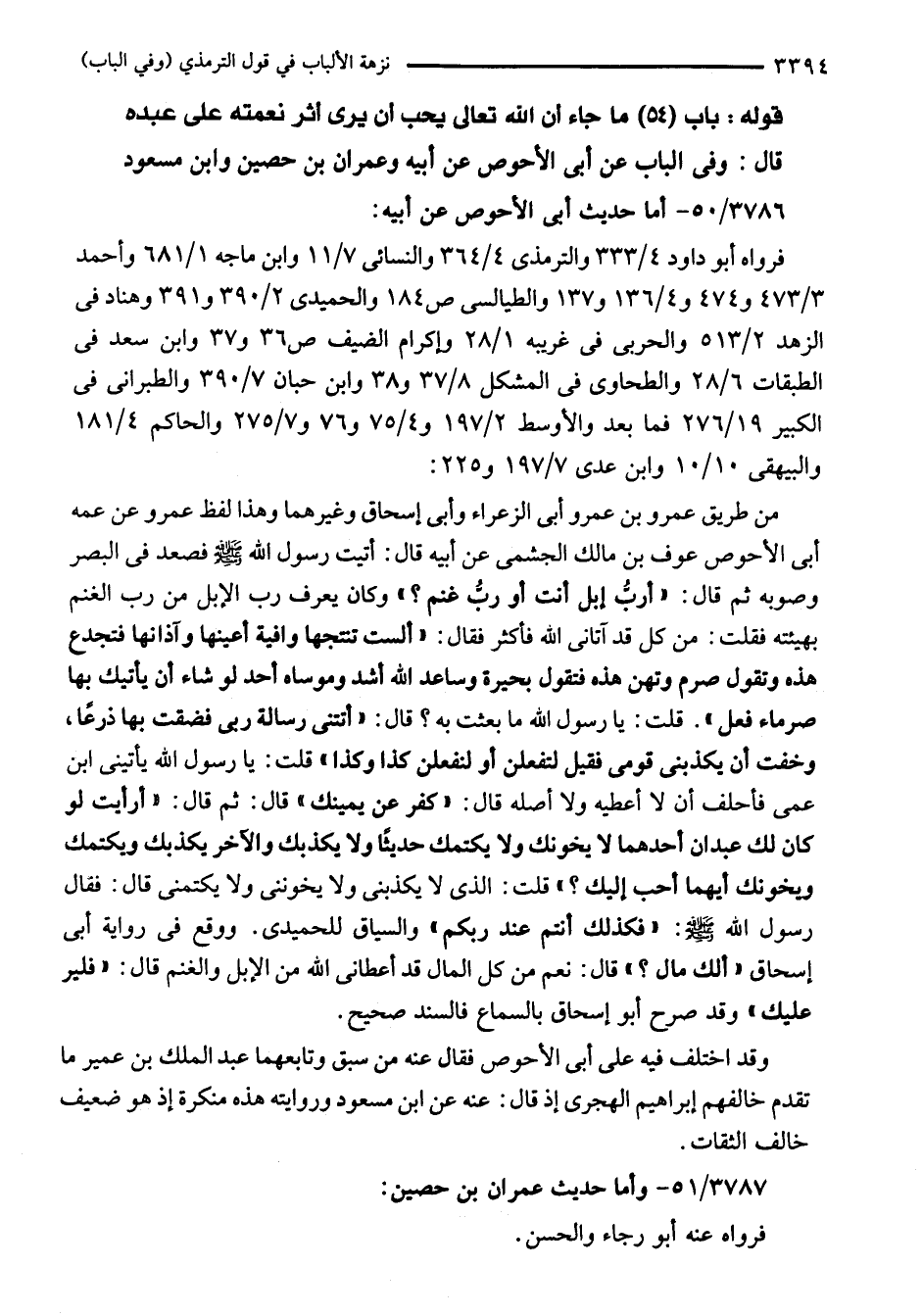 قوله: باب (54) ما جاء أن الله تعالى يحب أن يرى أثر نعمته على عبده