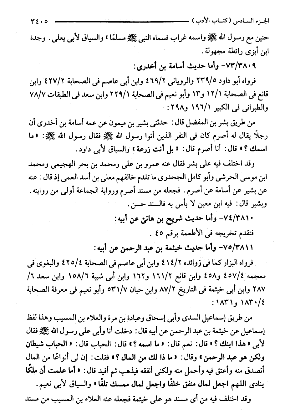 3809/ 73 - وأما حديث أسامة بن أخدرى: