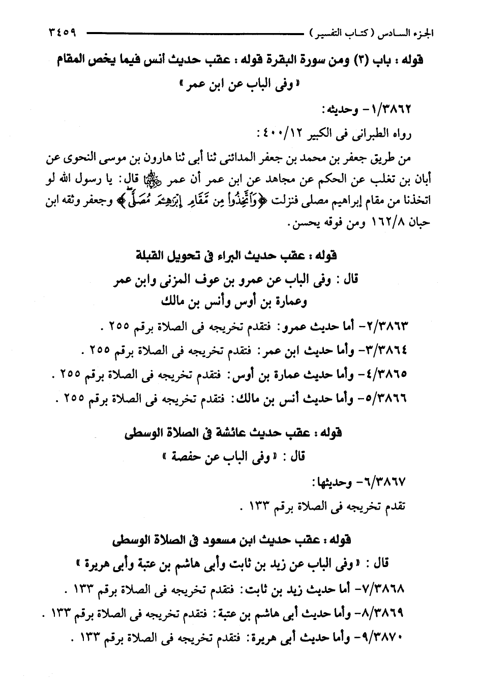 قوله: باب (3) ومن سورة البقرة قوله: عقب حديث أنس فيما يخص المقام "وفي الباب عن ابن عمر"