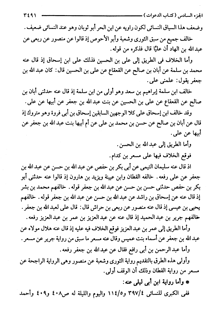 فوقع الخلاف فيها على مسعر بن كدام.