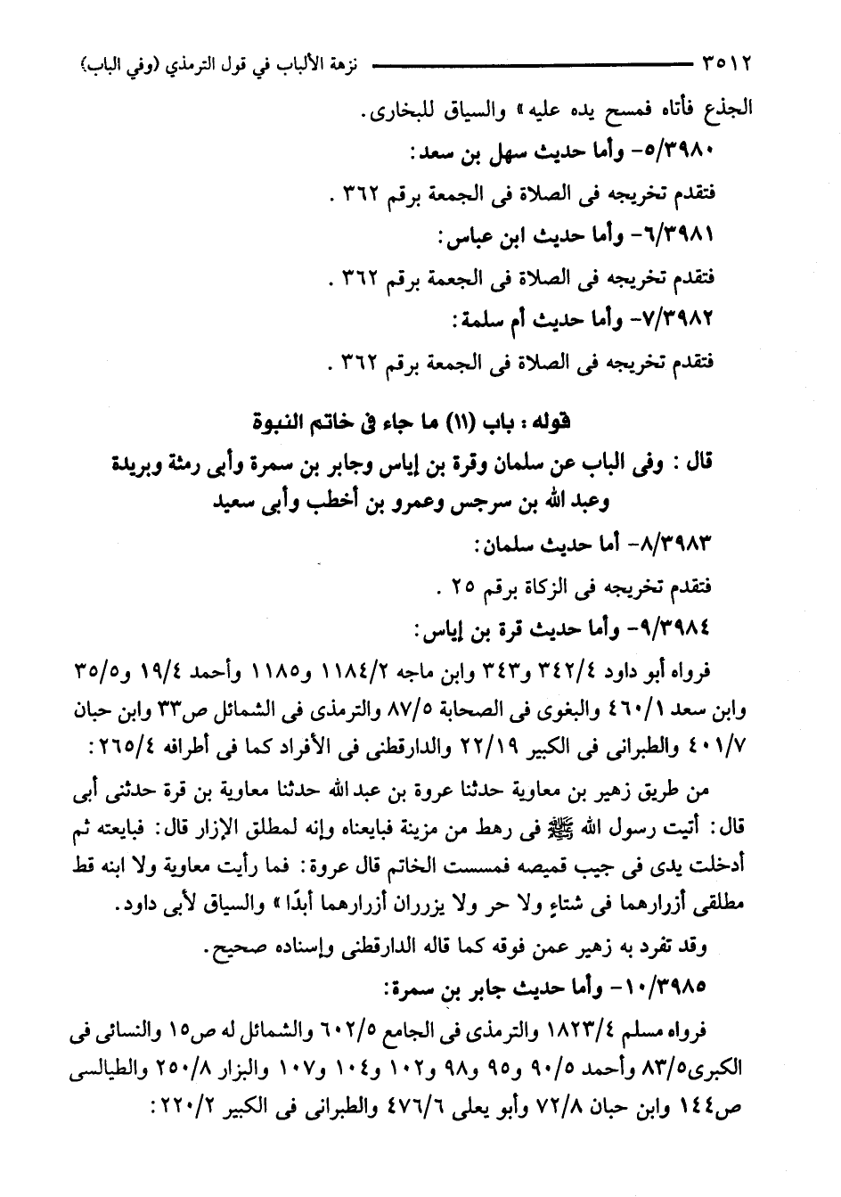كتاب نزهة الألباب في قول الترمذي «وفي الباب» (اسم الجزء: 6)