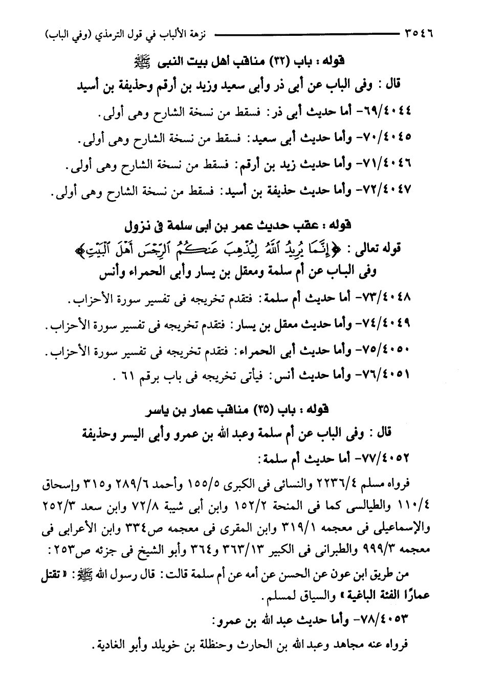 4048/ 73 - أما حديث أم سلمة: فتقدم تخريجه في تفسير سورة الأحزاب.