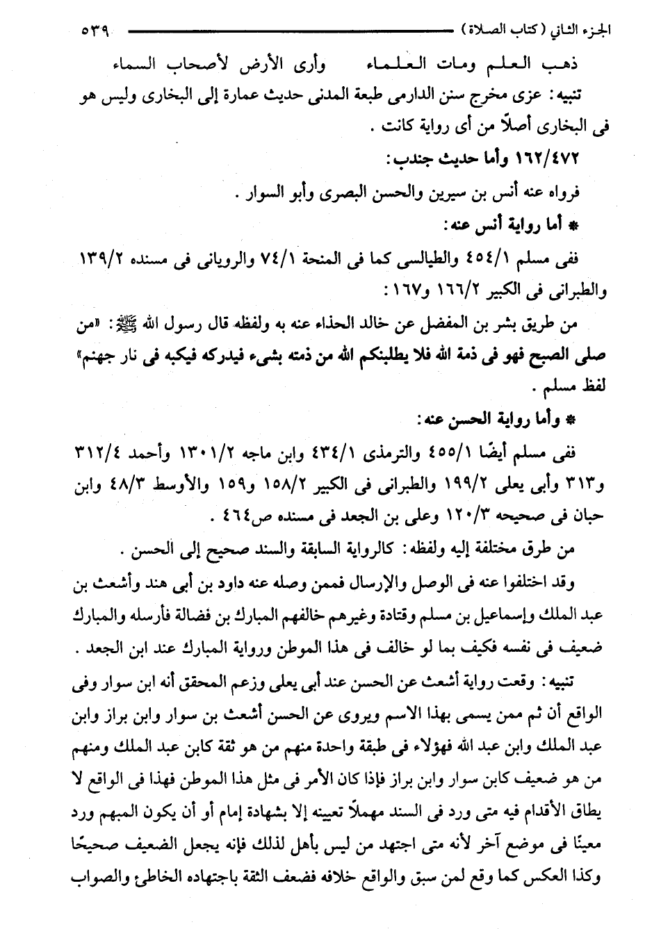 تنبيه: عزى مخرج سنن الدارمي طبعة المدنى حديث عمارة إلى البخاري وليس هو في البخاري أصلًا من أي رواية كانت.