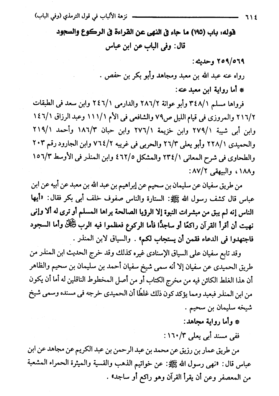 قوله: باب (195) ما جاء في النهى عن القراءة في الركوع والسجود