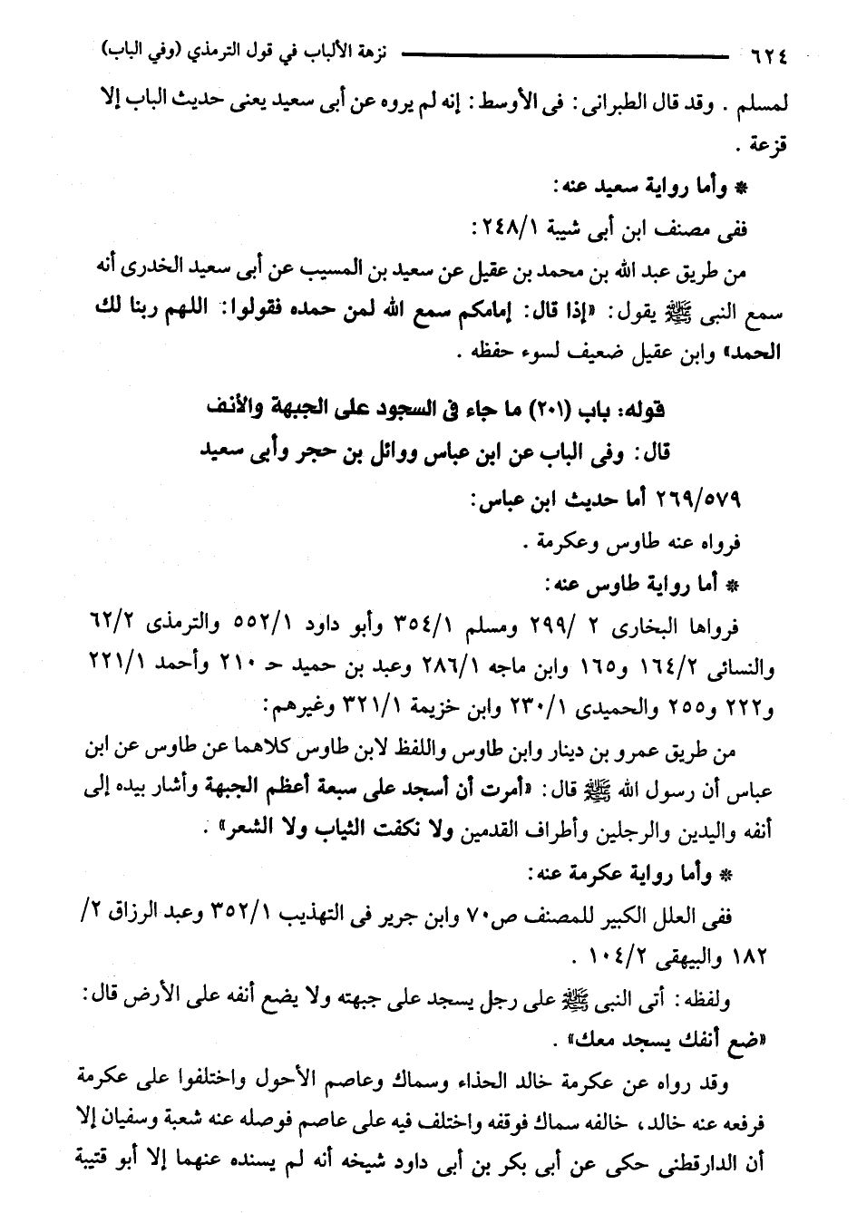 قوله: باب (201) ما جاء في السجود على الجبهة والأنف
