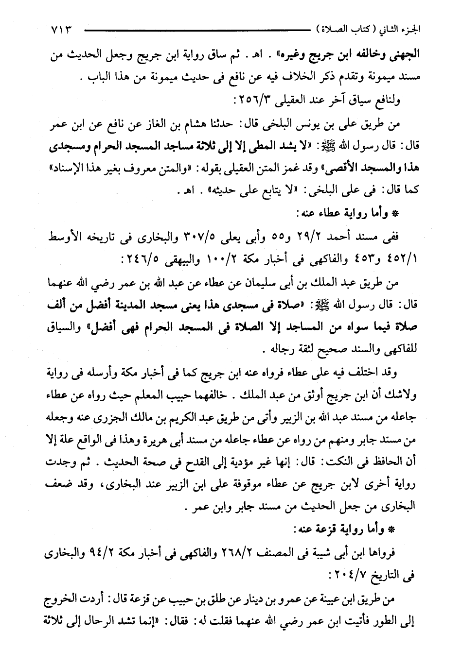 من طريق ابن عيينة عن عمرو بن دينار عن طلق بن حبيب عن قزعة قال: أردت الخروج إلى الطور فأتيت ابن عمر رضي الله عنهما فقلت له: فقال: "إنما تشد الرحال إلى ثلاثة