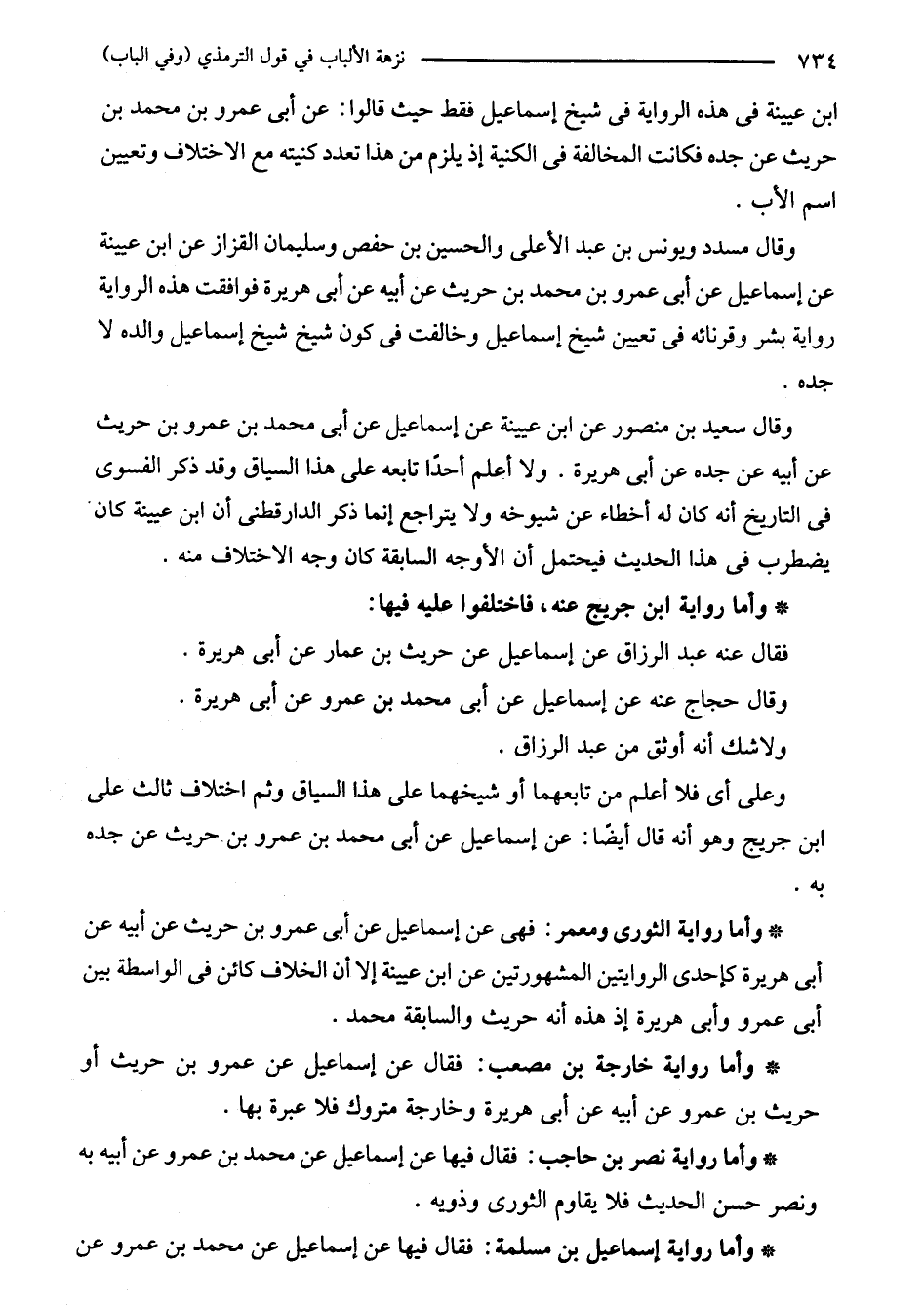 وقال مسدد ويونس بن عبد الأعلى والحسين بن حفص وسليمان القزاز عن ابن عيينة عن إسماعيل عن أبى عمرو بن محمَّد بن حريث عن أبيه عن أبى هريرة فوافقت هذه الرواية رواية بشر وقرنائه في تعيين شيخ إسماعيل وخالفت في كون شيخ شيخ إسماعيل والده لا جده.