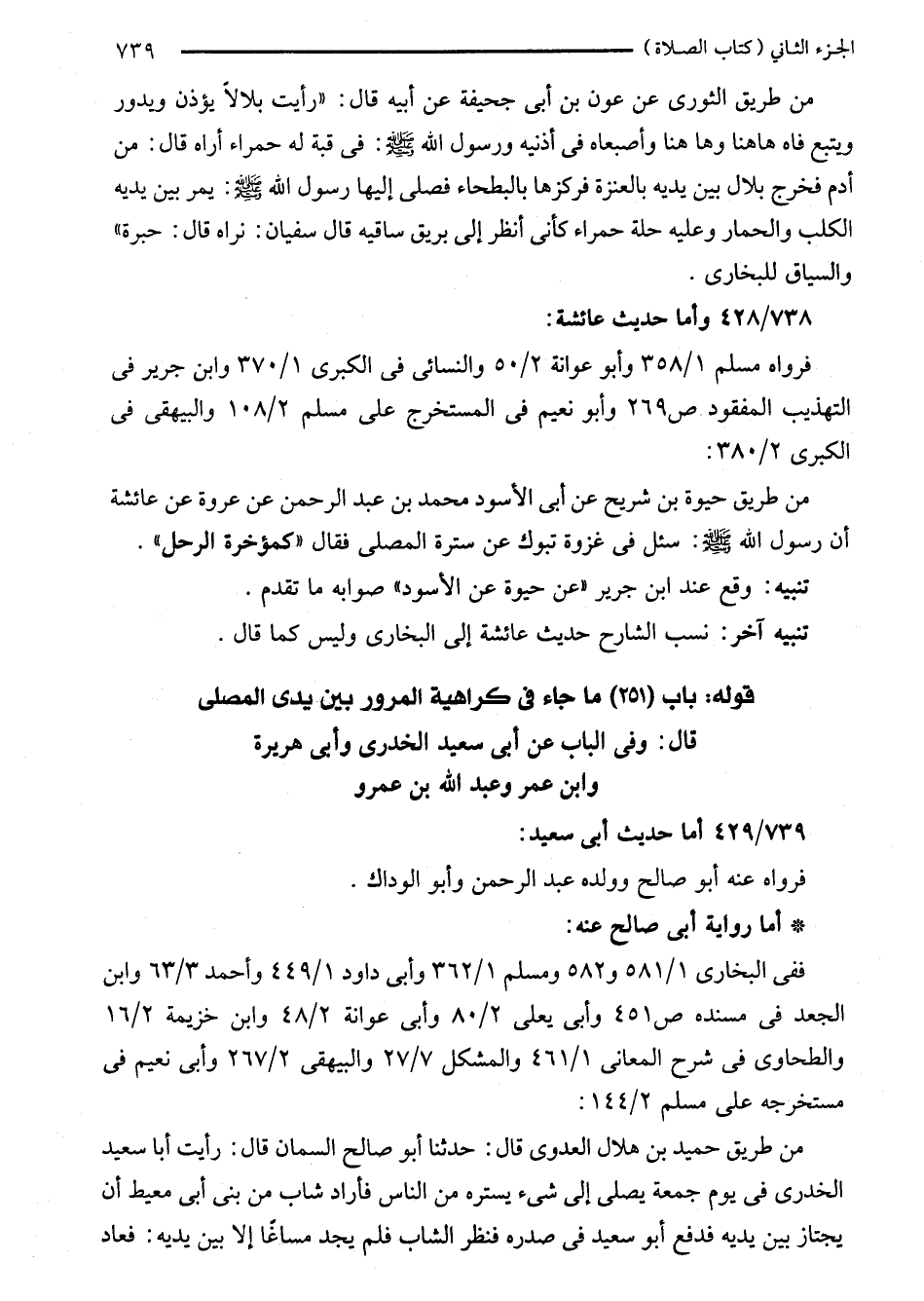 قوله: باب (251) ما جاء في كراهية المرور بين يدى المصلى