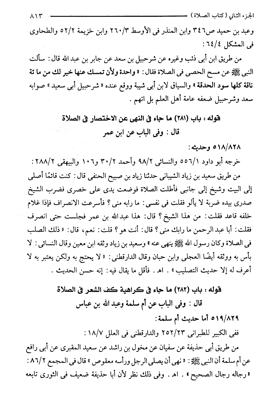 قوله: باب (282) ما جاء في كراهية كف الشعر في الصلاة