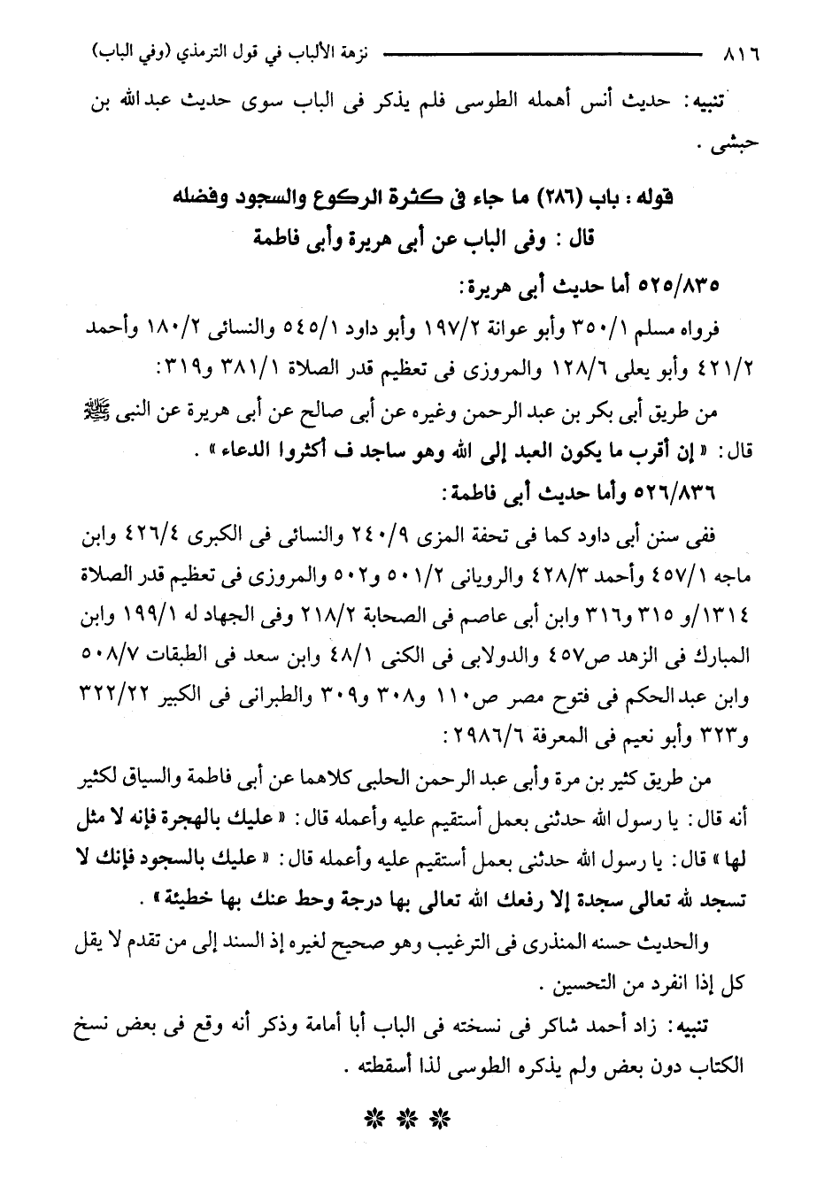 قوله: باب (286) ما جاء في كثرة الركوع والسجود وفضله