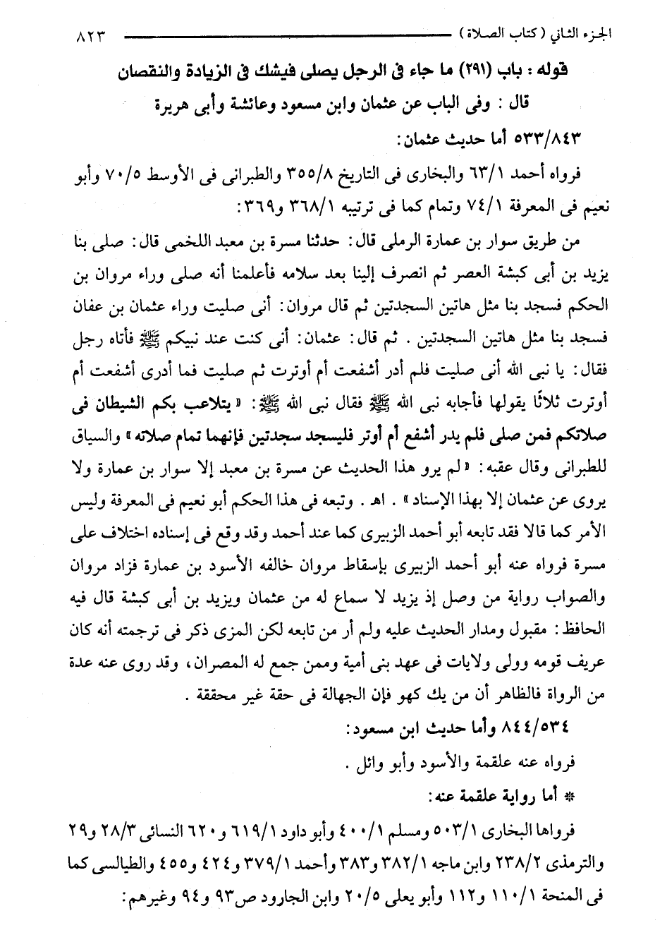 قوله: باب (291) ما جاء في الرجل يصلى فيشك في الزيادة والنقصان