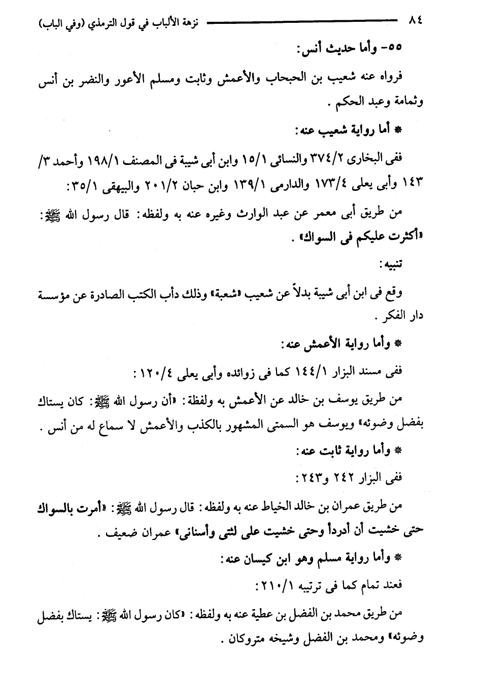 من طريق أبى معمر عن عبد الوارث وغيره عنه به ولفظه: قال رسول الله - صلى الله عليه وسلم -: "أكثرت عليكم في السواك".