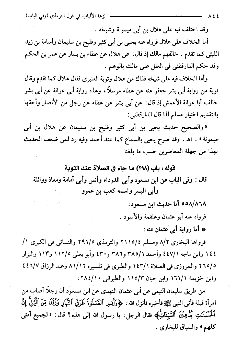 قوله: باب (298) ما جاء في الصلاة عند التوبة