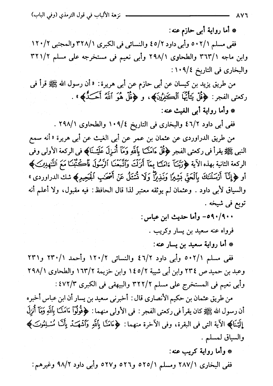كتاب نزهة الألباب في قول الترمذي «وفي الباب» (اسم الجزء: 2)