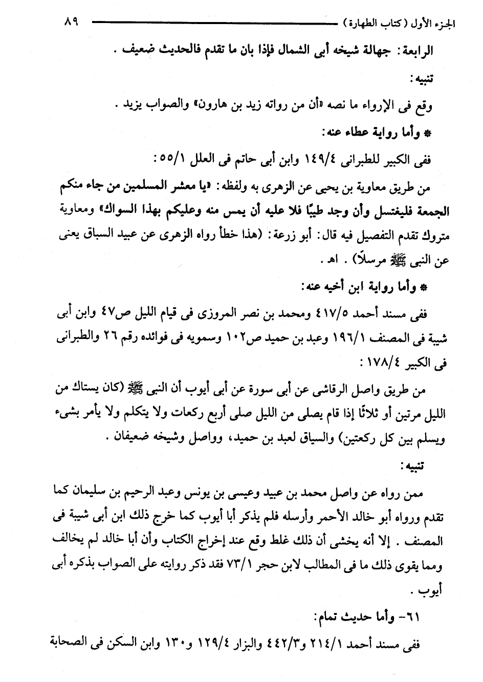 الرابعة: جهالة شيخه أبى الشمال فإذا بان ما تقدم فالحديث ضعيف.