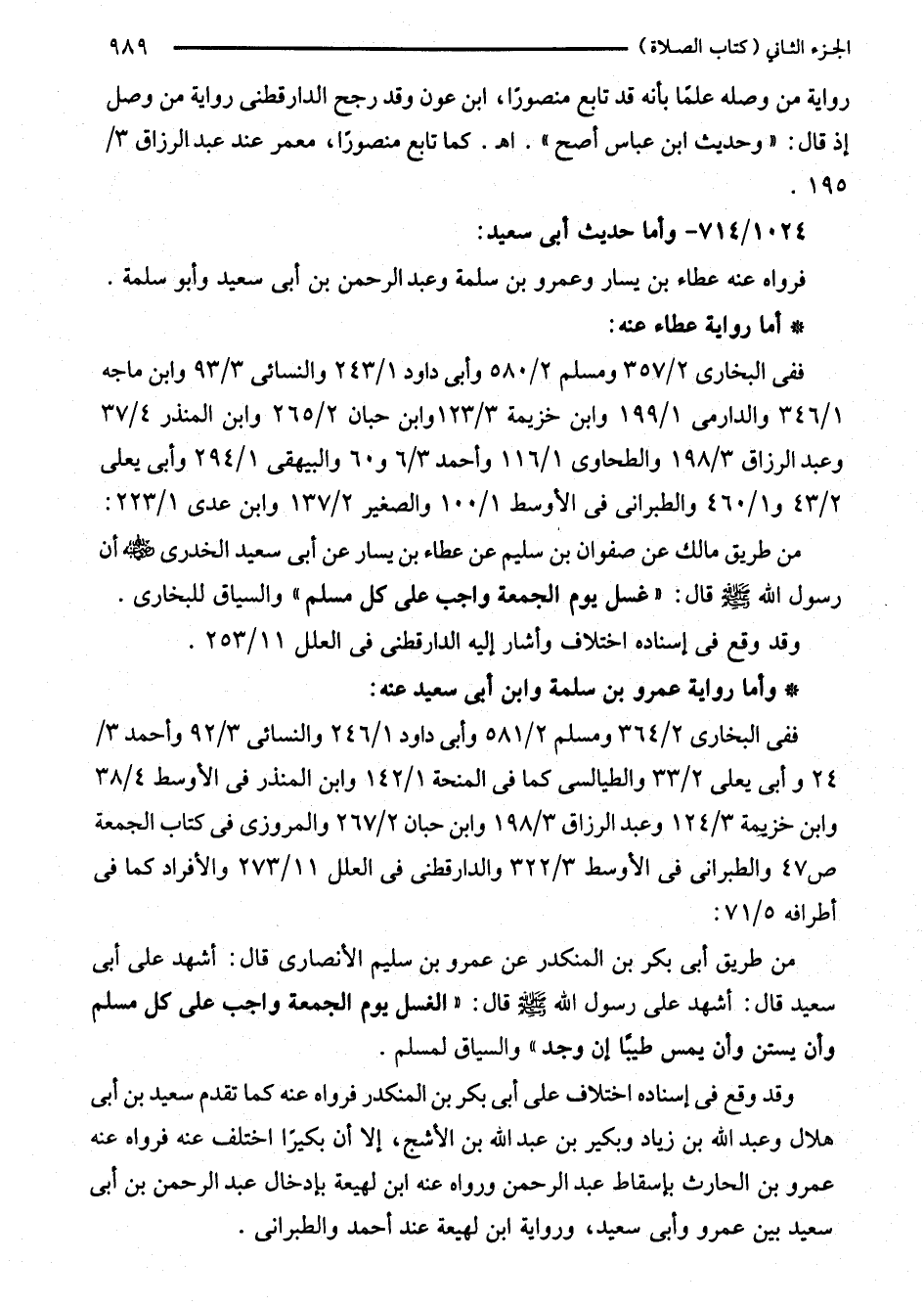 من طريق مالك عن صفوان بن سليم عن عطاء بن يسار عن أبى سعيد الخدرى - رضي الله عنه - أن رسول الله - صلى الله عليه وسلم - قال: "غسل يوم الجمعة واجب على كل مسلم" والسياق للبخاري.