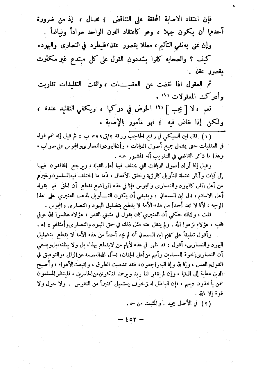 فإن كثرت الاقسام ولم تدر بين النفي والاثبات لم يحصل العلم كالتقسيم المعتاد في مصحح تعلق الرؤية وتعليله بالوجود فأما الشريعات عمرو فالتقسيم فيها يورث غلبة الظن بعد كون الحكم معللا ولا يشترط ارتفاع مواد الاحتمال بعد حصول غلبة الظن وقد اختلفوا في مسأله جدلية وهو ان المسؤول لو قال سبرت هل يلزمه ابداء كيفية السبر منهم من قال لا لأنه لا يستفيد درأ قوله يحتمل ان يكون وراءه تقسيم فإنه متوجه ذكره او لم يذكره وهو محتاج في رسم الجدال إلى ابداء قسم آخر والمختار أنه لا بد من ابداء كيفية السبر ليكون مؤسسا دليلا غير