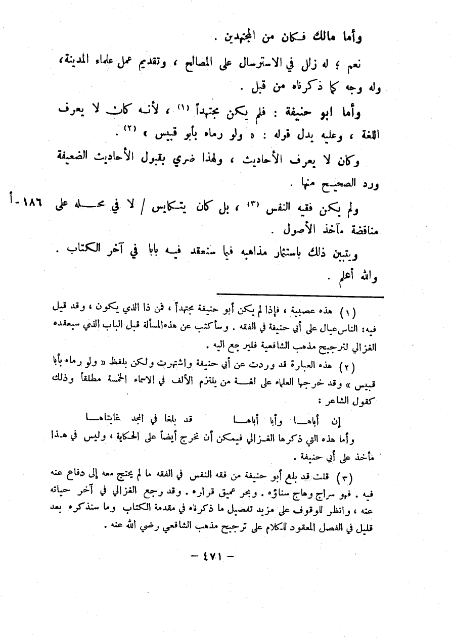 صناعاتهم وأشغالهم والشرع لا يرضى بمثله قطعا فيبيح لكل غني من ماله مقدار كفايته من غير ترفه ولا اقتصار على سد الرمق ويباح لكل مقتر في مال من فضل من هذا القدر مثله ويشهد لهذا قاعدة وهي أن الشخص الواحد إذا اضطر إلى طعام غيره أو إلى ميتة يباح له مقدار الاستقلال محافظة على الروح فالمحافظة على الأرواح أولى وأحق وكذلك نقول في المستظهر بشوكته المستولي على الناس المطاع فيما بينهم وقد شغر الزمان عن مستجمع لشرائط الإمامة ينفذ أمره لأن ذلك يجر فسادا عظيما لو لم نقل به