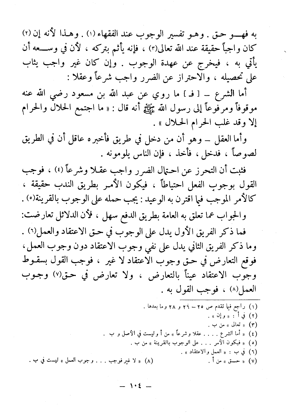 وما ذكر الفريق الثاني يدل على نفي وجوب الاعتقاد دون وجوب العمل، فوقع التعارض في حق وجوب الاعتقاد لا غير، فوجب القول بسقوط وجوب الاعتقاد عينًا لي التعارض، ولا تعارض في حق (¬7) وجوب العمل (¬8)، فوجب القول به.