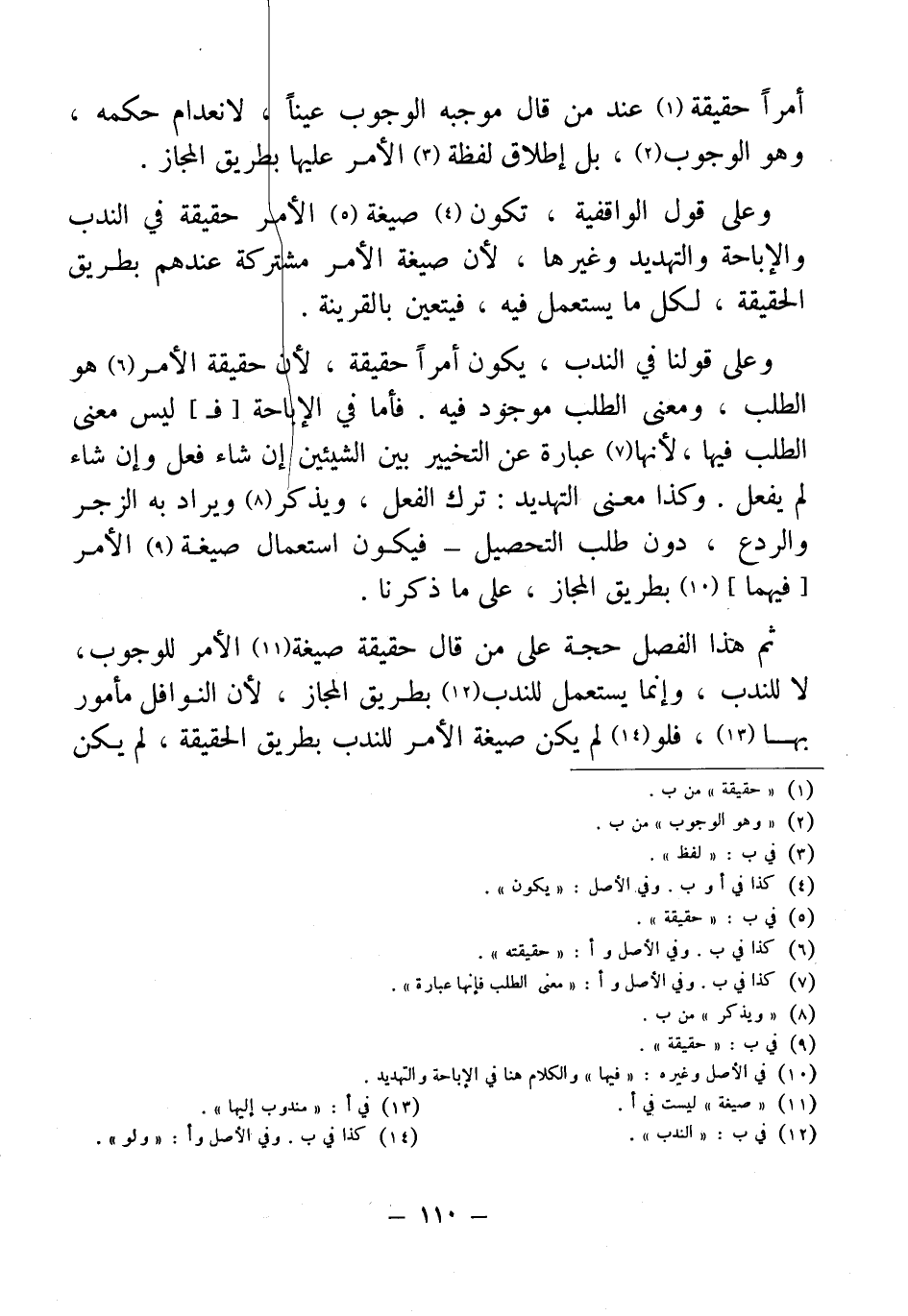وعلى قولنا في الندب، يكون أمرًا حقيقة، لأن حقيقة الأمر (¬6) هو الطلب، ومعنى الطلب موجود فيه. فأما في الإباحة [فـ] ليس معنى الطلب فيها، لأنها (¬7) عبارة عن التخيير بين الشيئين إن شاء فعل وإن شاء لم يفعل. وكذا معنى التهديد: ترك الفعل، ويذكر (¬8) ويراد به الزجر والردع، دون طلب التحصيل - فيكون استعمال صيغة (¬9) الأمر [فيهما] (¬10) بطريق المجاز، على ما ذكرنا.