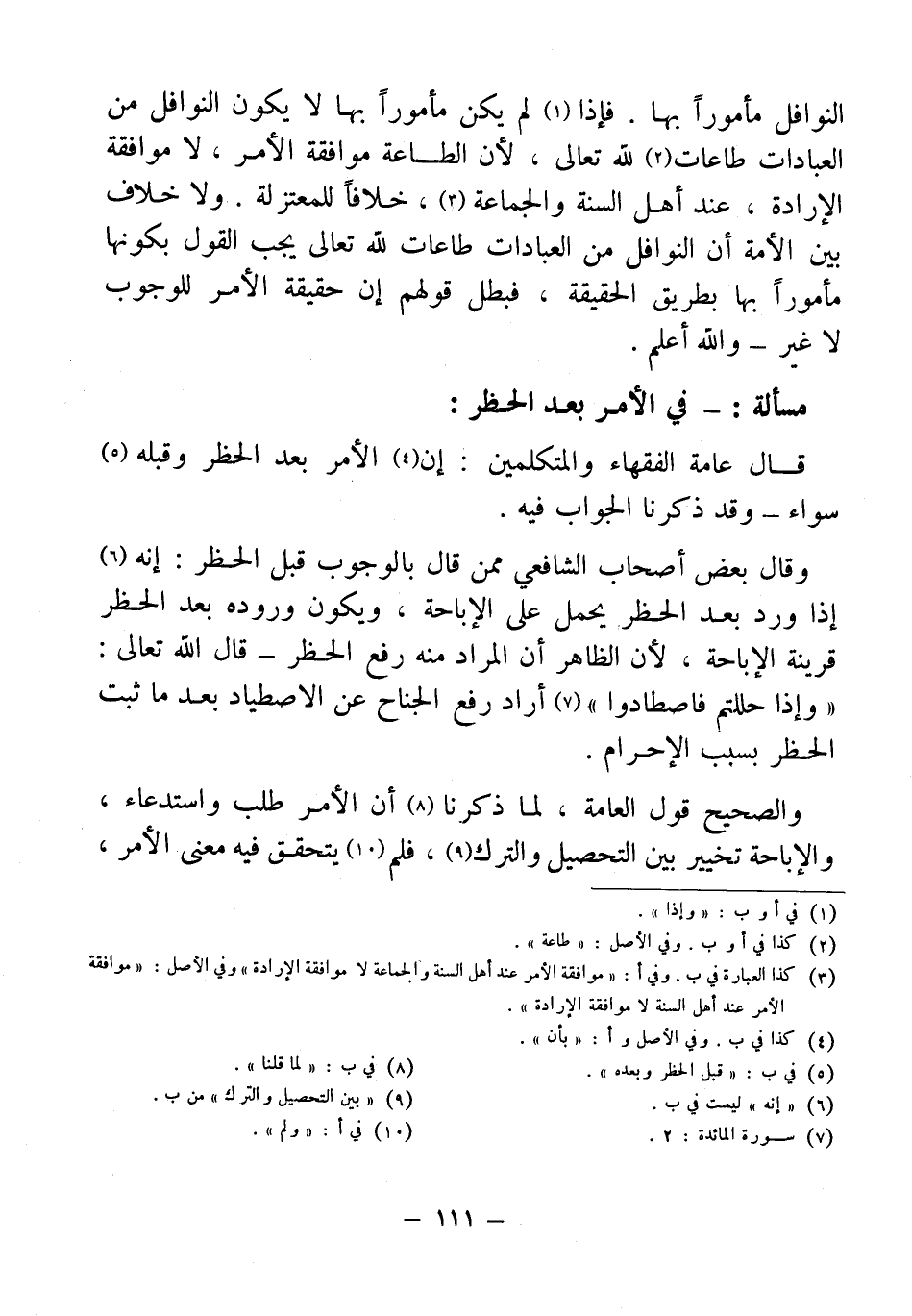 مسألة: - في الأمر بعد الحظر: