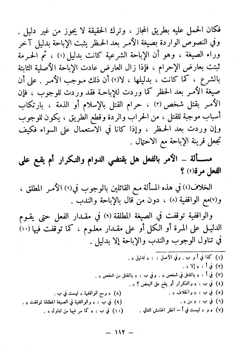 مسألة - الأمر بالفعل هل يقتضي الدوام والتكرار أم يقع على الفعل مرة (¬4)؟
