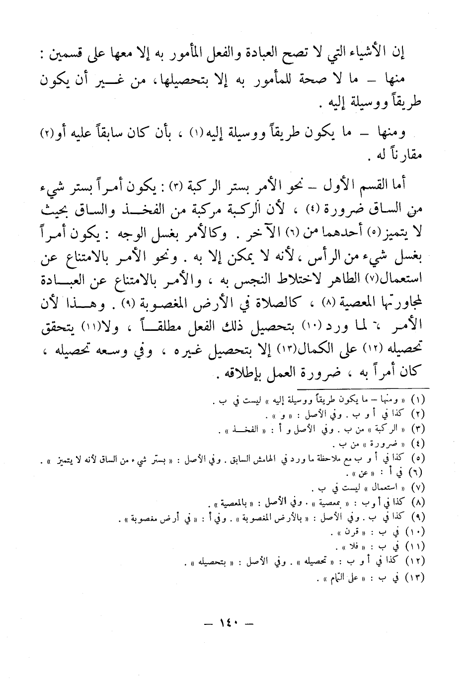 إن الأشياء التي لا تصح العبادة والفعل المأمور به إلا معها على قسمين: منها - ما لا صحة للمأمور به إلا بتحصيلها، من غير أن يكون طريقاً ووسيلة إليه.
