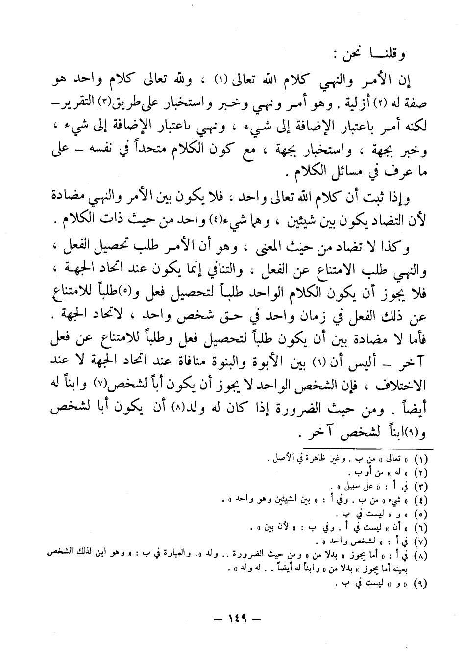 وإذا ثبت أن كلام الله تعالى واحد، فلا يكون بين الأمر والنهي مضادة لأن التضاد يكون بين شيئين، وهما شيء (¬4) واحد من حيث ذات الكلام.